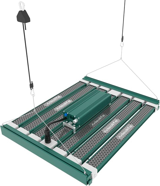 A ANLEOLIFE Stretchable LED Grow Lights with LM301H EVO Diodes 1000W Full Spectrum Dimmable Daisy Chain 5x7ft Coverage Bar Style Commercial Growing Lamp for Greenhouses Plants