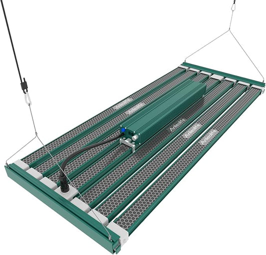 A ANLEOLIFE Stretchable LED Grow Lights with LM301H EVO Diodes 730W Full Spectrum Dimmable Daisy Chain 5x5ft Coverage Bar Style Commercial Growing Lamp for Greenhouses Plants