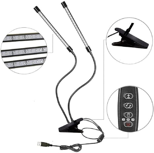 Black 2-Tube Clip-On Grow Light with Red/Blue/Yellow LEDs, Full Spectrum, 6/12/16H Timer, 3 Modes & 10 Dimmable Levels, for Indoor Plants (8W) (2 Pack)