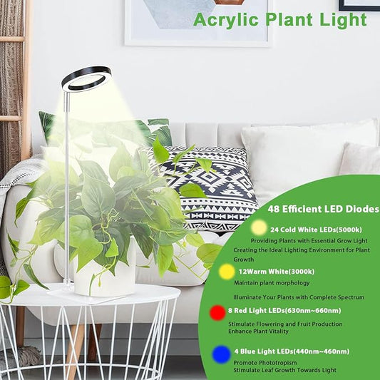 yadoker Halo Plant Grow Light, LED Growing Light Full Spectrum for Indoor Plants,Height Adjustable, Automatic Timer, 5V Low Safe Voltage,Idea for Small Plants