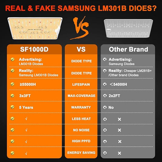Spider Farmer 2025 SF1000D LED Grow Lights with Samsung LM301B Diodes Full Spectrum Grow Light for Indoor Plants Veg/Bloom Growing Lamps in Grow Tent