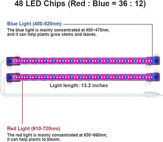 Mosthink LED Grow Light for Indoor Plants, 20W Grow Light Strips with Auto On/Off Timer, 48 LEDs /4 Dimmable Levels, Plant Light Bars for Succulents, Seedlings,Indoor Greenhouse,Plant Shelf