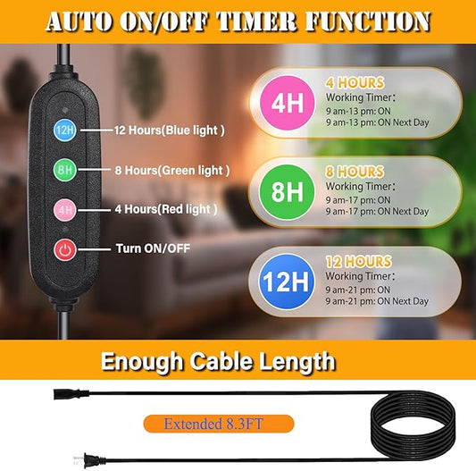 Grow Lights for Indoor Plants, 6000K Full Spectrum Plant Growth Light, Plant Lights for Indoor Growing with 5 Level Dimmable & Auto Timer, Adjustable Gooseneck Grow Lamp, 1 Pack