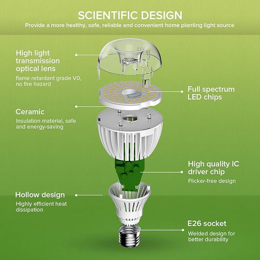 Grow Light Bulb 10 Watt with Ceramic Technology PPF 17.5 umol/s LED Full Spectrum Grow Lamp with High PPFD, Energy Saving Plant Lights for Seeding Growing