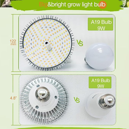 Grow Light Bulbs for Indoor Plants Full Spectrum E26 A19 10W,Grow LED Light Bulb with Balanced Spectrum 5000K Blue Red for Seeds Greens Laboratory,School,Greenhouse, Indore Garden, Hydroponic,1Pcs