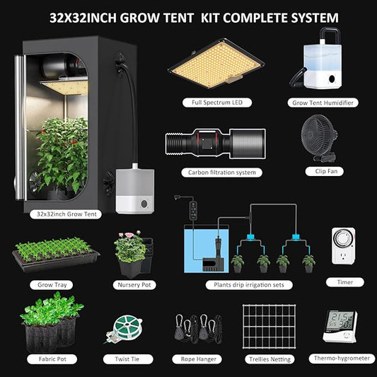 Upgrade Integrated Auto 2'X2' Grow Tent Kit Complete System, S1000 LED Grow Light, Grow Tent with 4“Ventilation Kit, Inline Fan&Carbon Filter, Irrigation Kit, Humidifier and Clip Fan
