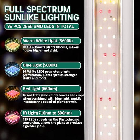 SZHLUX Grow Light 4FT 140W (2×70W, 800W Equivalent) Super Bright Full Spectrum Sunlight Plant Light, LED Grow Light Strips, Linkable Growing Lamp for Indoor Plants