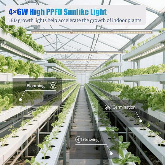 1FT T5 4-Pack Grow Lights for Indoor Plants, 3000K Warm Full Spectrum LED , Plant Grow Lamps with Side Switch, Suitable for Greenhouse Seed Starting, Vegetables, Plug and Play, Easy Installation