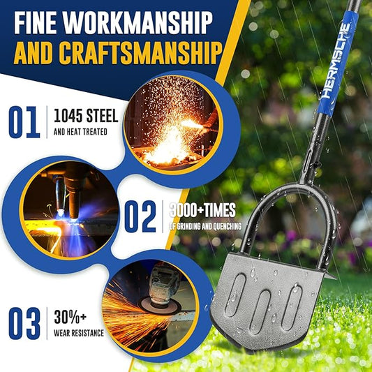 Lawn Edger Tool, Half Moon Tooth Edger with T-Grip Handle, 40-Inch Long Handled Sidewalk Grass Edger for Precise Lawn Edging and Land scaping