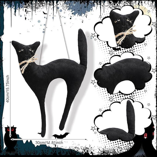 Suhine 16 Inch Halloween Black Cat Hanging Decoration Vintage Rustic Black Cat Wall Ornament Hanging Gifts Primitiva Retro Farmhouse Halloween Decoration for Door Indoor Wall Outdoor