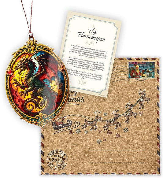 Fire Dragon Ornament – dragon ornament – fantasy gifts – mythical decor – christmas ornament – Suncatcher effect window hanging – Car Hanging