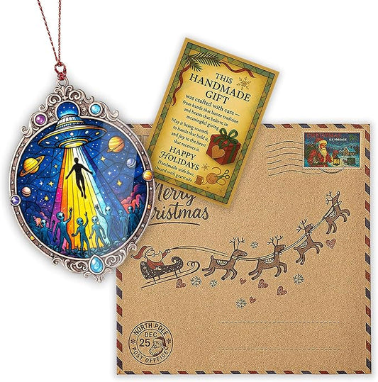 Alien Ornament – UFO Decor | Galaxy Ornament + Sci Fi Keepsake – Space Lover Gift – Alien Christmas Ornament – Suncatcher Effect Window Hanging – Car Hanging Decoration