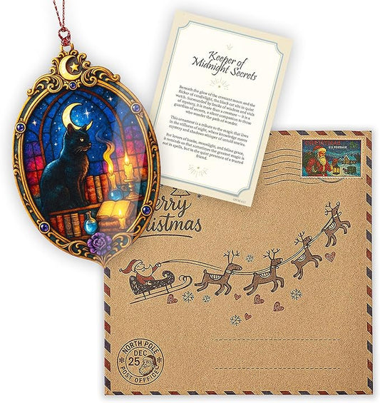 Mystic Black Cat Ornament – black cat – witch gifts – gothic decor – christmas ornament – Suncatcher effect window hanging – Car Hanging
