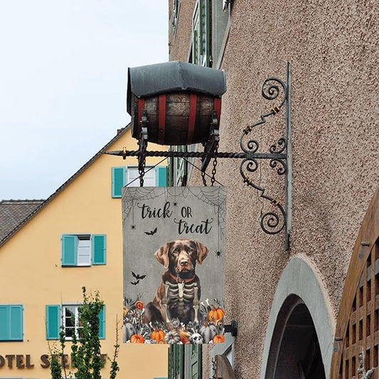 Halloween Labrador Chocolate Dog Bat Pumpkin Garden Flag Welcome Party Outdoor Outside Decorations Picks Home House Garden Yard Decor 12x18 Inch