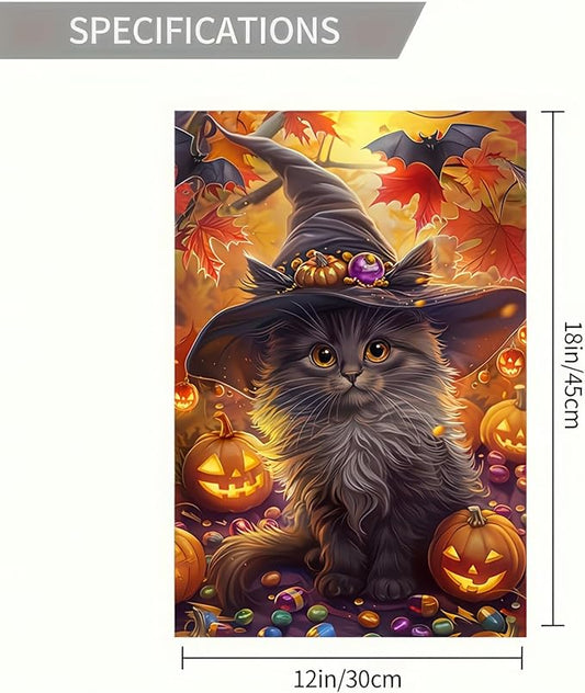 Halloween Garden Flag 12x18 Double Sided Witch Cat Garden Flag Welcome Halloween Bats Full Moon Pumpkin Flag for Outside Decor Holiday Outdoor DecorationsYard Home Banner
