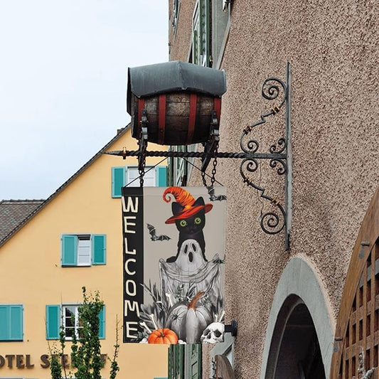 Halloween Ghost Cat Boo Pumpkin Skull Bat Garden Flag Welcome Party Outdoor Outside Decorations Picks Home House Garden Yard Decor 12x18 Inch