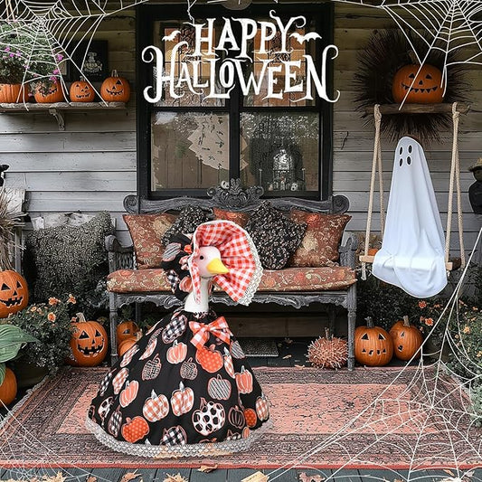 Halloween Goose Outfit Porch Witch Goose Clothes for 23'' Cement Plastic Geese Costume for Yard Lawn Outdoor Garden Patio Statue Holiday Decor