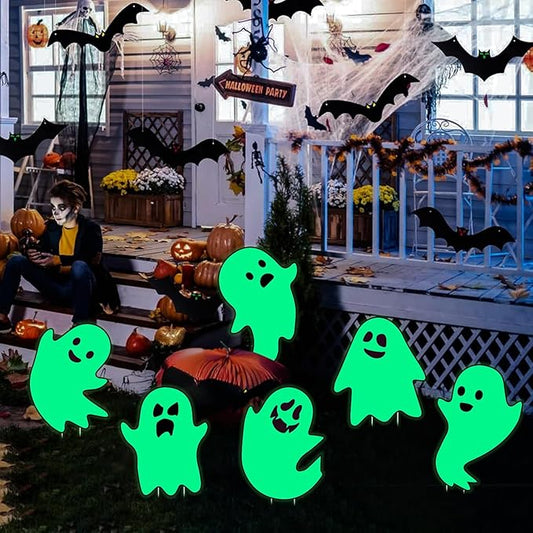 6Pcs Halloween Ghost Yard Stakes Glow in The Dark, 17"x12" Large Light Up Scary Ghost Decorations for Outdoor Lawn, Porch, Cemetery and Indoor Haunted House Displays, Waterproof and Easy Setup