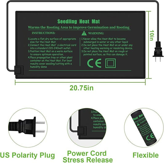 Seedling Heat Mat with Thermostat 40-108 Degrees Fahrenheit Warming Pad, Warm Hydroponic Heating Pad with Controller for Germination, 10" x 20.75" UL & MET-Certified