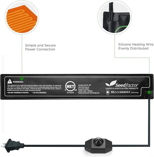 MET Certified Seedling Heat Mat, Seedfactor Adjustable Temperature Waterproof Durable Germination Station Heat Mat, Warm Hydroponic Heating Pad for Indoor Home Gardening Seed Starter