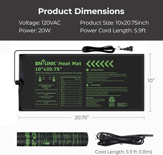 BN-LINK Durable Seedling Heat Mat for Seed Starting 10" x 20.75", 4 Pack Waterproof Warming Mat for Plants Germination, Plant Heating Pad for Indoor Growing, Hydroponic, Greenhouse, ETL Listed