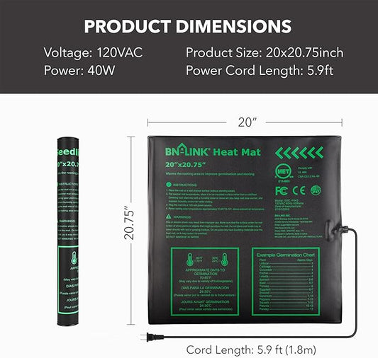 BN-LINK Seedling Heat Mat Warm Hydroponic Heating Pad Waterproof 20" x 20.75" for Seed Starting Greenhouse and Germination, 2 Pack