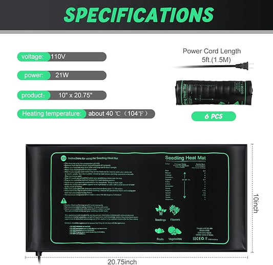 ROCEEI 6 Pack Durable Seedling Heat Mat 10 x 20.75 Waterproof Plant Heating Pad Warm Hydroponic Grow Mat for Greenhouse Grow Seed Starting Plant Germination (Black,Green)