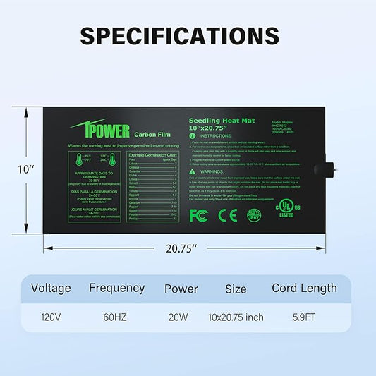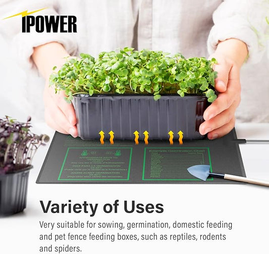 iPower 10" x 20.75" Seeding Heat Mat with New-Upgraded Carbon Film, Indoor Gardening Plant Germination Starting Pad, Durable Waterproof, Black