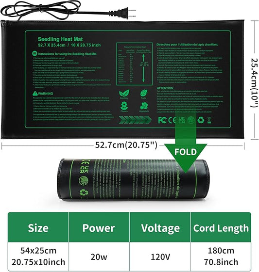 Seedling Heat Mat Durable Waterproof Plant Heating Pad 10"x 20.75" for Germination, Indoor Gardening, Greenhouse