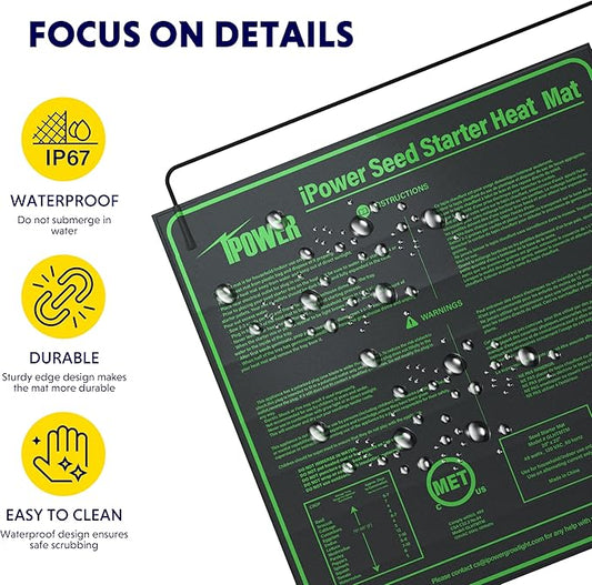 iPower Durable Seedling Heat Mat Warm 20" x 20" Hydroponic Heating Pad Waterproof for Seed Starting Greenhouse and Germination