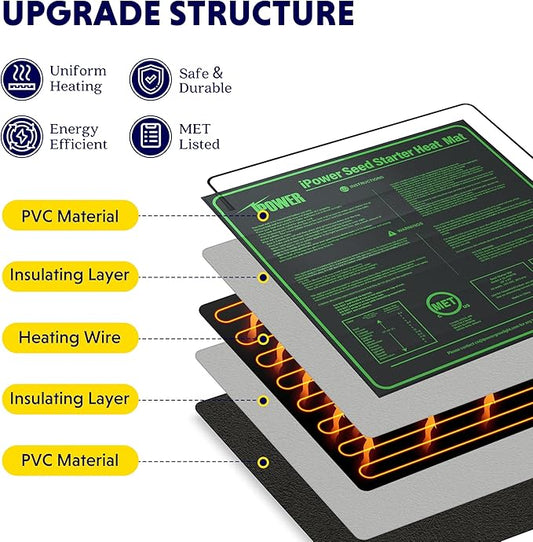 iPower Upgrade 10" x 20" Durable Waterproof Seedling Heat Mat with ETL Certified, Warm Hydroponic Heating Pad for Germination, Indoor Gardening, Brewing and Seed Starting