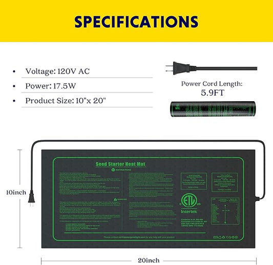 MET Certified Seedling Heat Mat, Seedfactor Waterproof Durable Germination Station Heat Mat, Warm Hydroponic Heating Pad for Indoor Home Gardening Seed Starter(10" x 20")