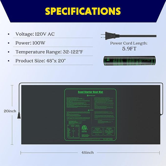 Seedfactor 48" x 20" MET Certified Seedling Heat Mat and Digital Thermostat Combo Set