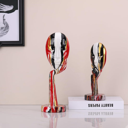 suruim Simple Creative Colorful Female Face Art Statue Thinker Sculpture Abstract Character Crafts Ornament Home Office Bedroom Living Room Study Decoration (Large-1 15.3in)