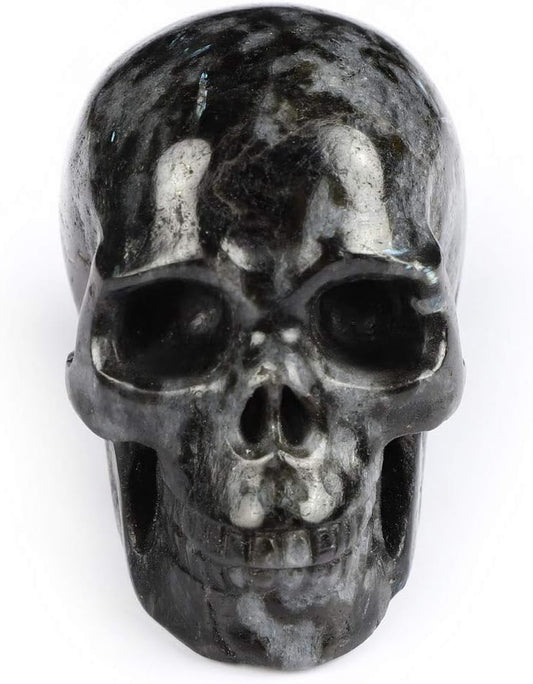 Skullis 2.0” Russian Arfvedsonite Crystal Skull, Hand Carved Gemstone Fine Art Sculpture, Reiki Healing Stone Statue.1