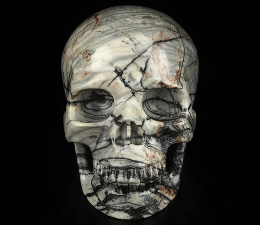 Skullis 5.0”Picasso Jasper Crystal Skull, Hand Carved Gemstone Fine Art Sculpture, Reiki Healing Stone Statue.3159