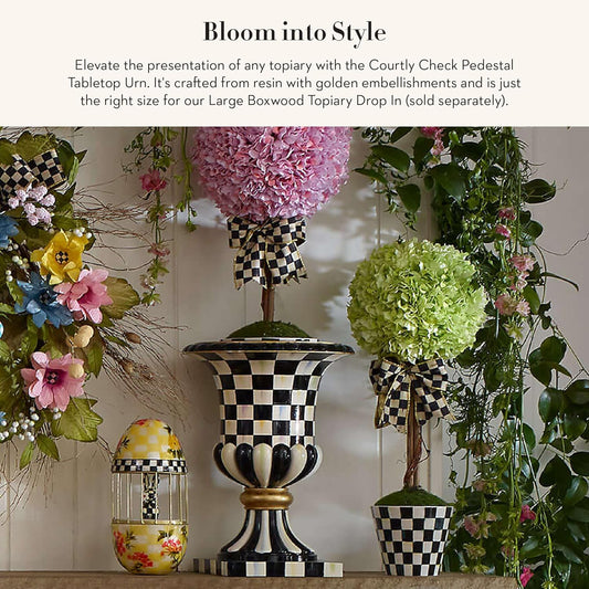 MACKENZIE-CHILDS Pedestal Tabletop Urn, Decorative Centerpiece for Table, Mantel, or Shelf, Tall, Black-and-White Courtly Check