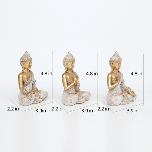 Buddha Statue for Home Decor Gold 4.3'' Set of 3-Small Buddha Statues for Zen Decor-Table Desk Spiritual Decor-Buddha Decor for Living Room-Indoor Buddha Gift for Relaxation, Meditation or Shrine