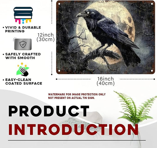 Halloween Crow Vintage Metal Tin Sign for Home Bar Kitchen Hotel Dining Room Coffee 12x16inch