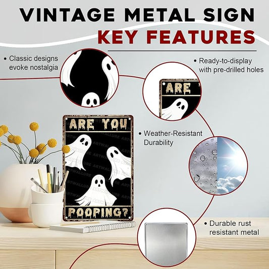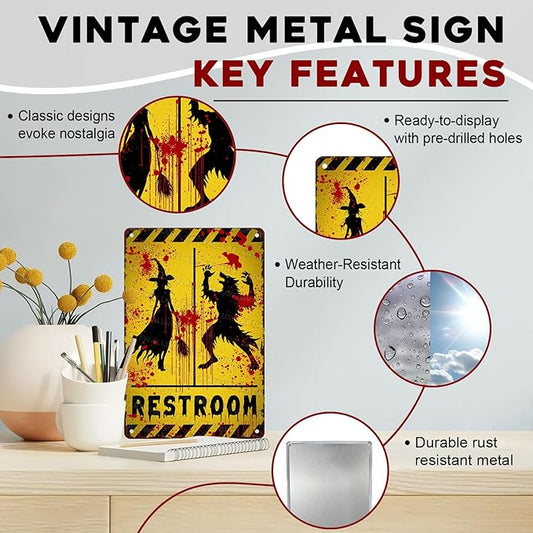 Halloween Restroom Decor Vintage Rustic Wall Art Retro Tin Plaque Iron Painting Funny Toilet Door 8x12inch