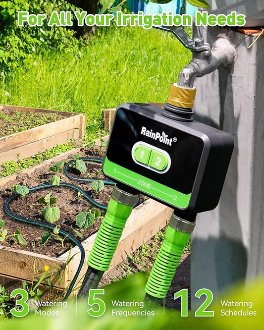 RAINPOINT Sprinkler Timer, 2 Outlets Hose Timers, 2 Zone Water Timer for Watering with Rain Delay/Manual/Automatic Timed Irrigation Controller System for Lawn