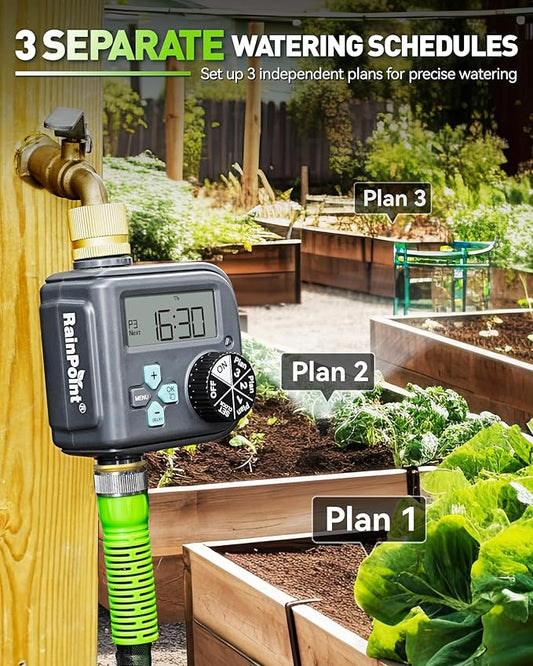 RAINPOINT Sprinkler Timer with Brass Inlet and Outlet - 2025 Upgraded Digital Hose Timer Featuring 3 Programs, Rain Delay, Manual, and Automatic Watering System for Garden and Yard Irrigation
