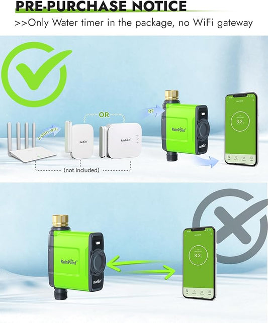 RAINPOINT WiFi Water Timer for Garden Hose, Brass Inlet WiFi Sprinkler Controller, Smart Hose Timer Valve, Automatic Drip Irrigation System/Rain Delay for Garden/Lawn/Yard (No Gateway)