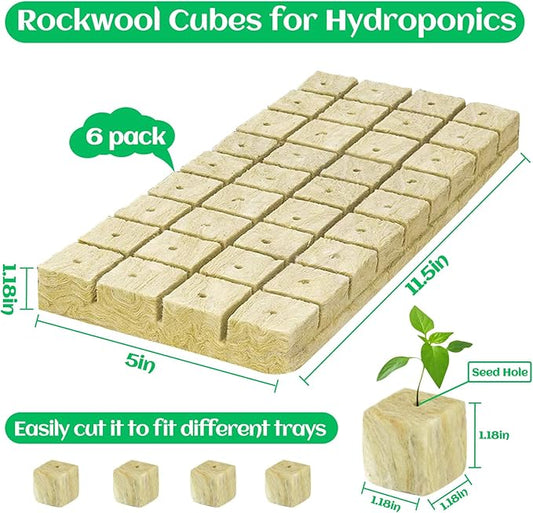 Legigo 1.2 Inch Rockwool Cubes Seed Starter Plugs for Hydroponics, RockWool Planting Grow Cubes for Hydroponic Tower Garden Soilless Cultivation Plants Germination Cutting Clone (6 Sheet, 216 Plugs)