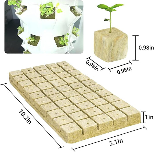 Legigo 1 Inch Rockwool Cubes Seed Starter Plugs for Hydroponics, RockWool Planting Grow Cubes for Hydroponic Tower Garden Soilless Cultivation Plants Germination Cutting Clone (2 Sheet, 100 Plugs)