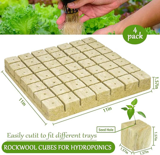 Legigo 1.5 Inch Rockwool Cubes for Hydroponics Seed Starter, Rock Wool Planting Cubes Hydroponic Garden Grow Plugs for Soilless Cultivation Plants Cutting Germination Clone(4 Sheet, 196 Plugs)