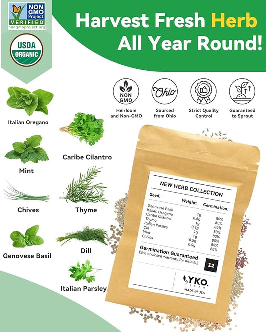 Gourmet Herb Seed Pod Kit Compatible with AeroGarden, idoo, Ahopegarden, Gardencube with Basil, Parsley, Thyme, Mint, Cilantro, Dill, Oregano, Chives - Compatible with All Hydroponics(8-Pod)