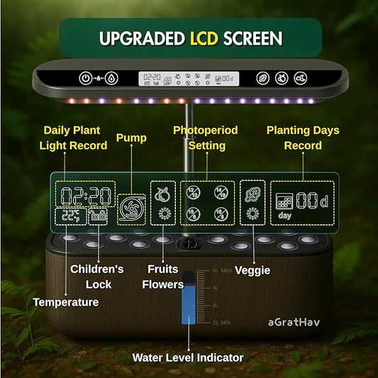 Hydroponics Growing System Kit, Indoor Herb Garden, 14 Pods Upgraded LCD Display, LED Grow Light Quiet Smart Water Pump Automatic Timer, Hydroponic Planter for Home Kitchen Office