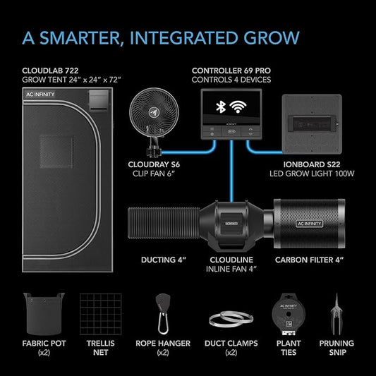 AC Infinity x Athena® Cultivator Kit, Complete 2-Plant Grow Tent System with Blended Line Fertilizer Starter Kit, Dynamic Learning AI Control with WiFi-Integrated Quiet Fans, Full Spectrum EVO Lights