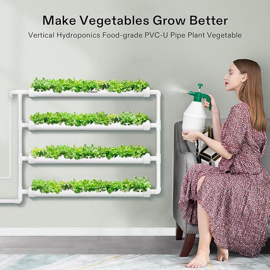 VIVOSUN Wall-Mounted Hydroponic Grow Kit, 1 Layers 36 Plant Sites 4 Food-Grade PVC-U Pipes Hydroponics Planting System with Water Pump, Pump Timer, Nest Basket and Sponge for Leafy Vegetables